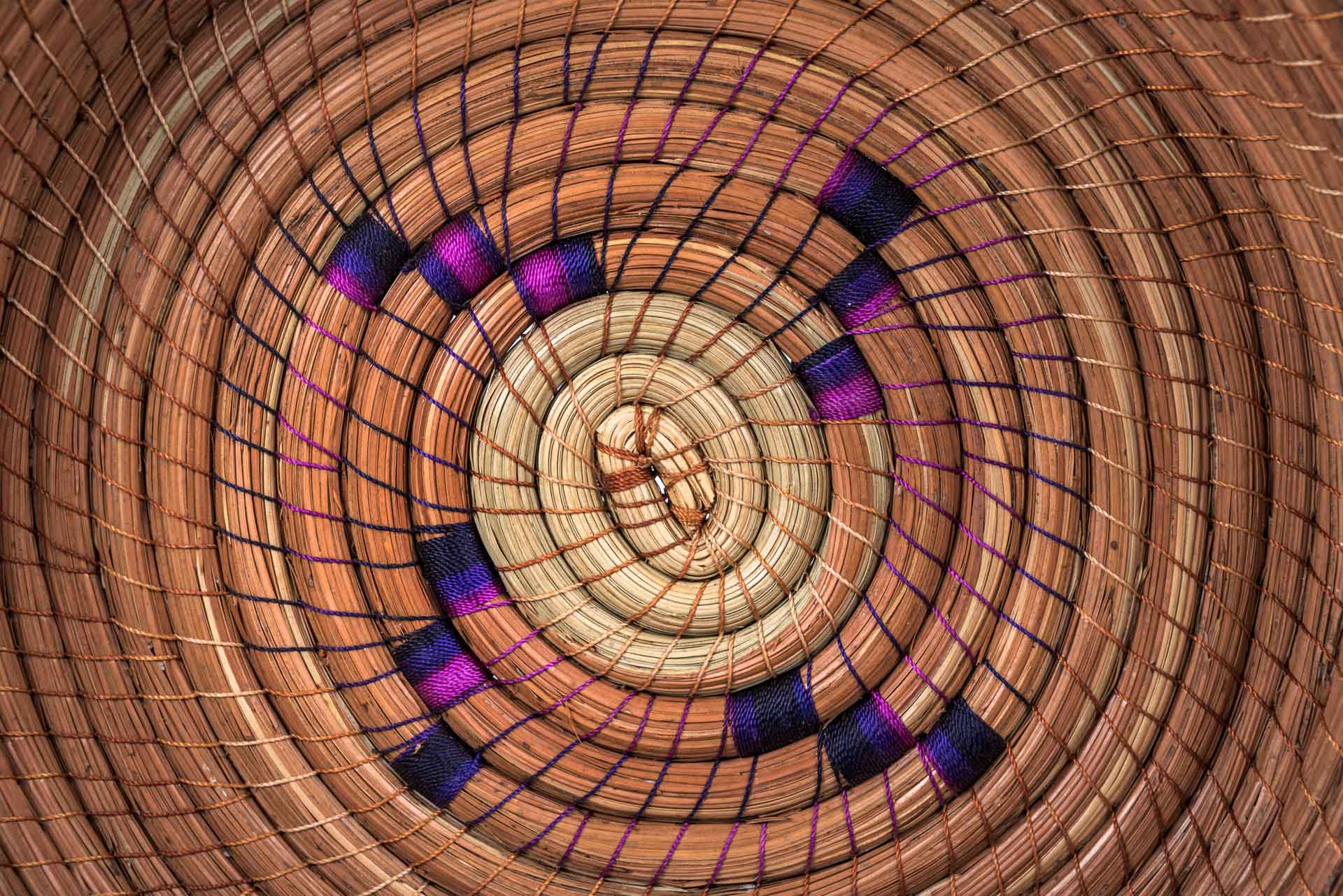 Ocoxal Basket with Purple Pinwheel Thread Design
